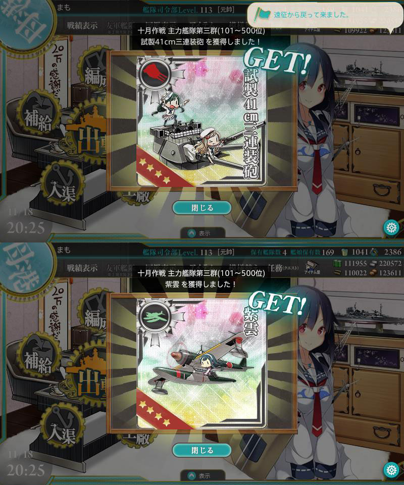 無事に全部クリア&今回のイベで実装された艦娘もゲットできました