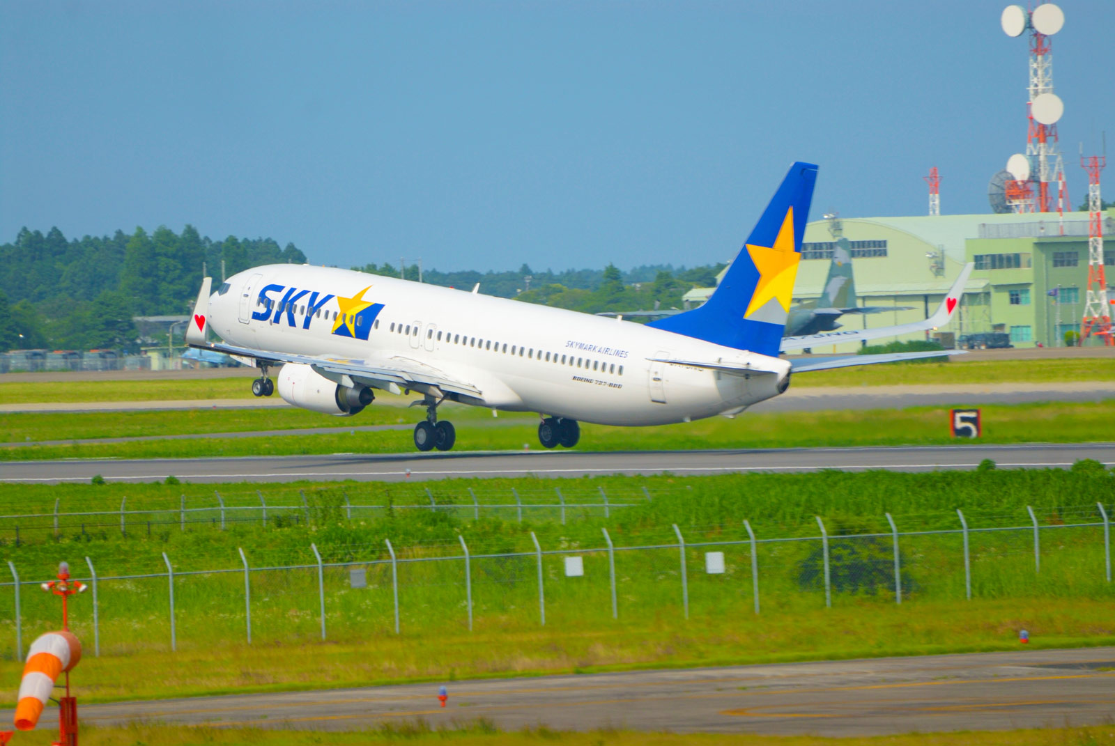 自衛隊機が離発着してるとスカイマークも離陸のために動き出しました