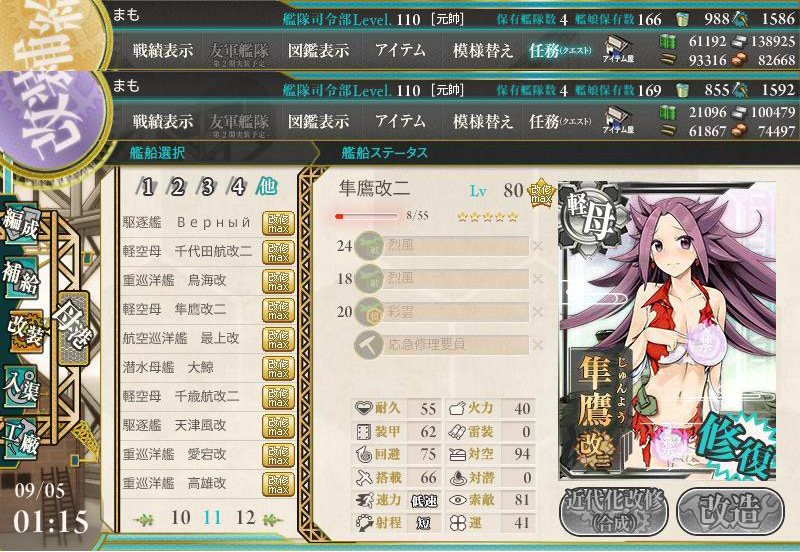 艦娘の図鑑はようやく全部埋まりましたw(;・∀・)