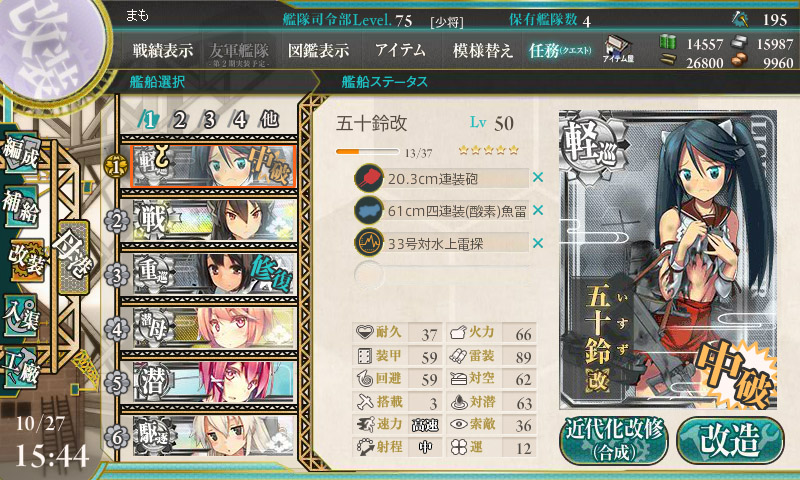 五十鈴ちんがようやくLv50に(`・ω・´)