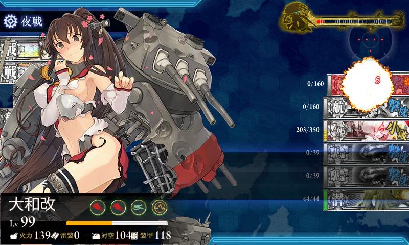 最後かなり危なかったのですが何とかピッタリ大和が残りダメージ削って終了でち