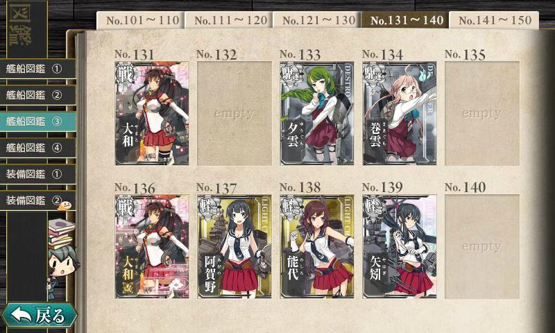 残りは秋雲と長波とあきつ丸のみとなりましたが所持艦娘の枠が課金しないと足りませんorz