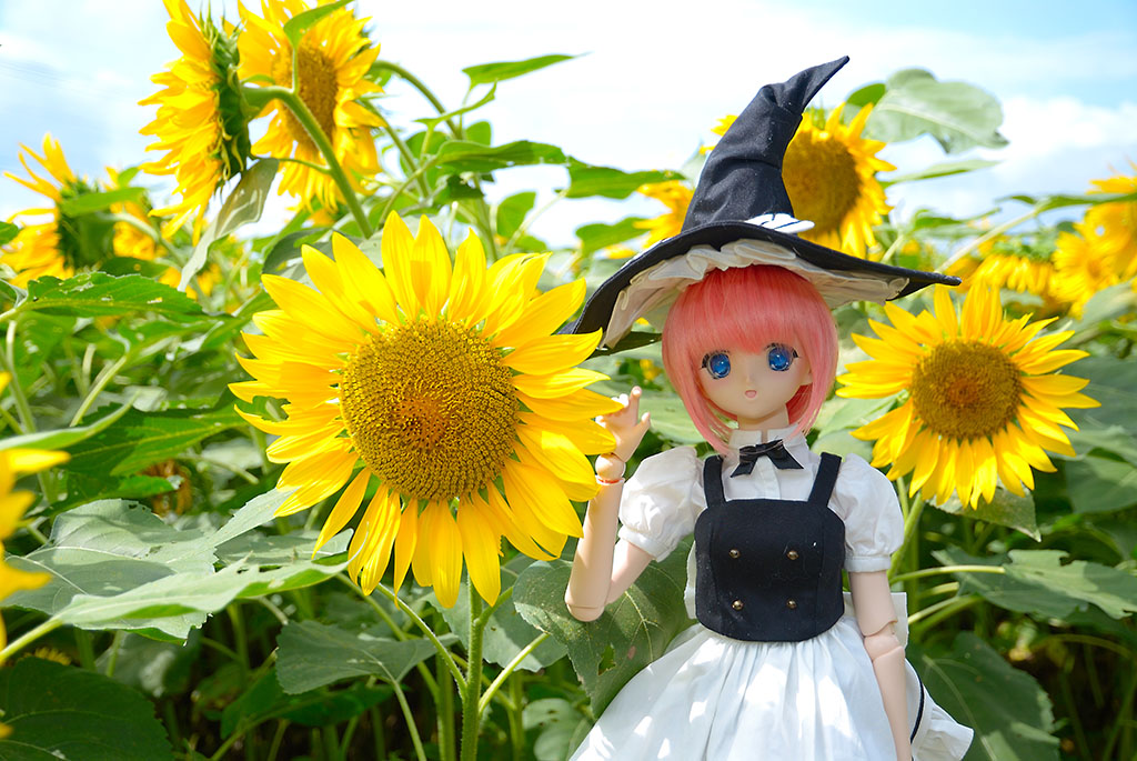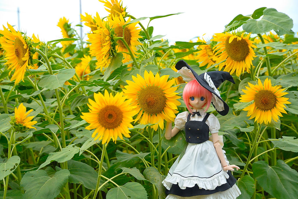 前回はまだ我が家にいなかった隠し子のフィーナ姫をひまわりに囲まれて撮影したくて