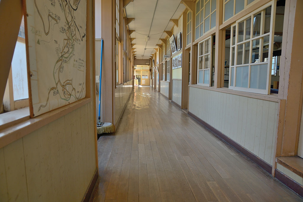 校舎内は立ち入り禁止なのでドア越しに撮影