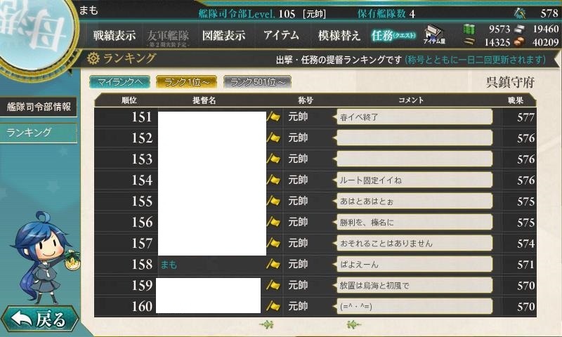 5/9の午後のランクでは158と大健闘中です(;・∀・)