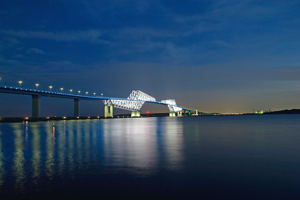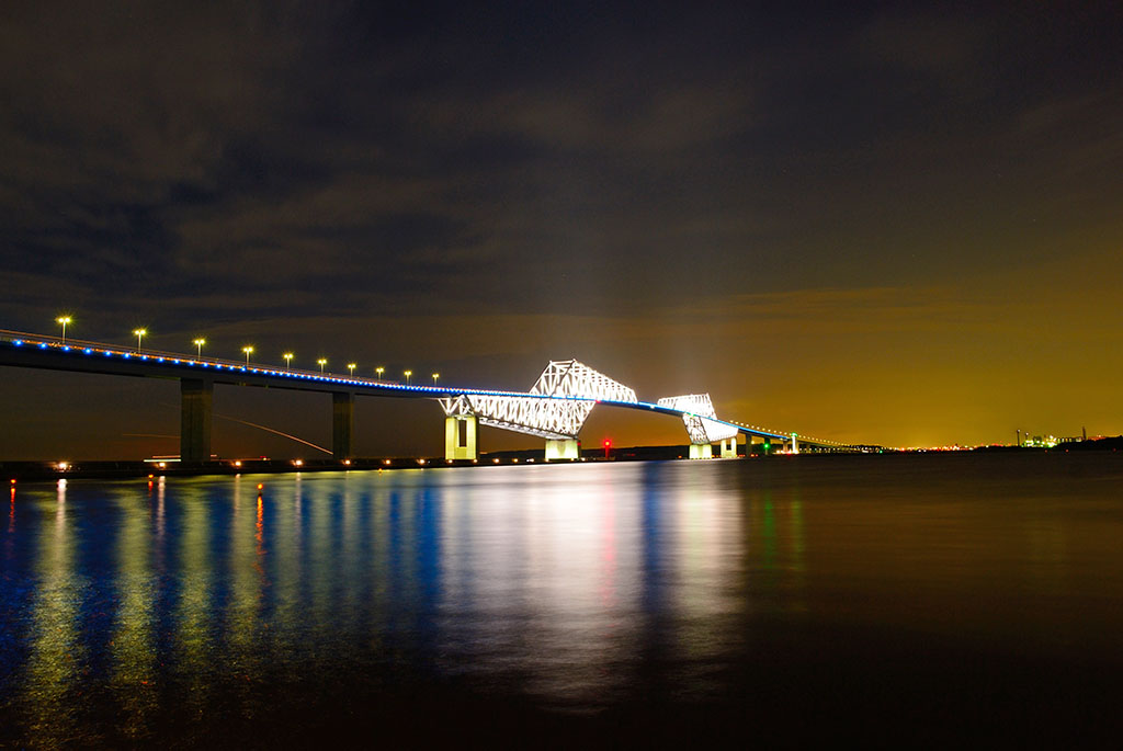 対岸のさらに奥の工場地帯の灯りを強調した感じの1枚